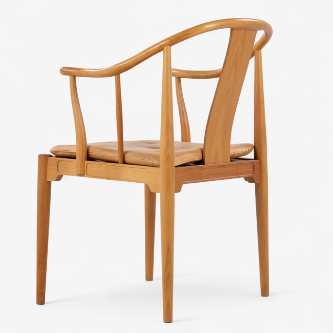 FH 4283 - Kinastol i kirsebær med hynde i patineret naturlæder. Mærket fra producent.
