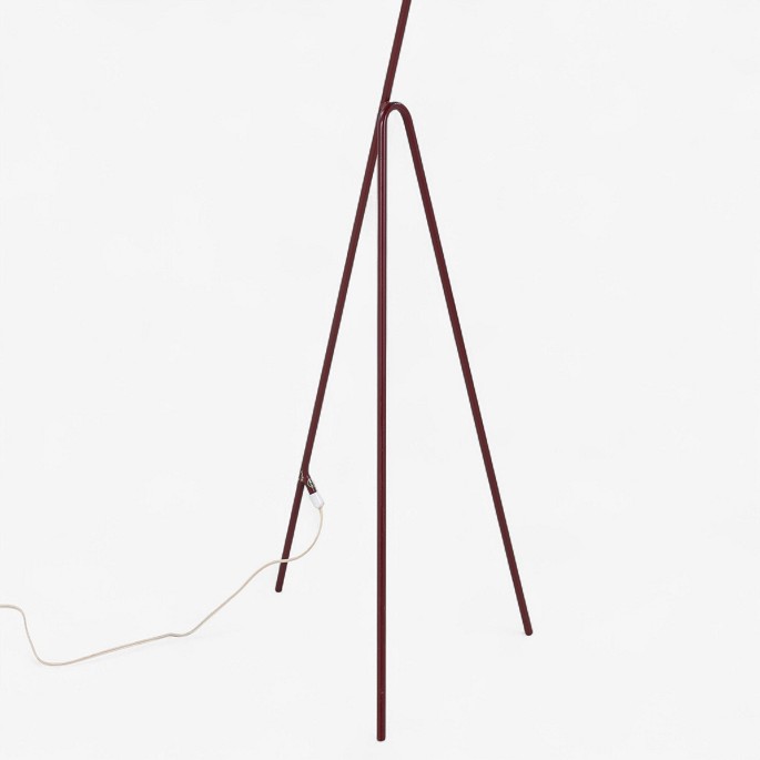 Model 569 - 'Giraffen' floor lamp with a frame in patinated red lacquered metal and a white fabric shade.
