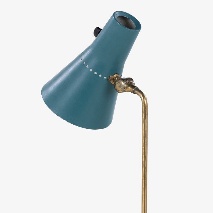 Model KLK 2851 - Gulvlampe i patineret messing og grønlakeret metal.