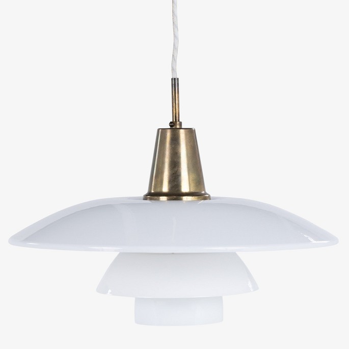 PH 4/3 - Pendant lamp with white glass shades and brass handle.