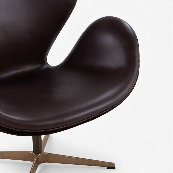AJ 3320 - 'Swan' armchair in dark brown Elegance leather and brown suede on a bronze base.