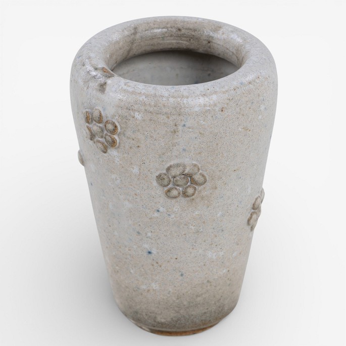 Vase i stentøj dekoreret med hvid glasur og blomstermotiv. Signeret.