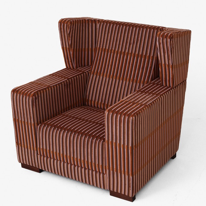 Square Chair i COF Dedar. Fås i tekstil efter eget valg. Square Chair er Klassik Studios eget design, og er en usædvanlig komfortabel lænestol. Stolen giver kant til de mere traditionelle designklassikere og kan polstres i en lang række nordiske tekstiler og lædertyper, der er med til at skab en smuk balance med de mange designs vi kender fra 1950’er og 1960’erne.