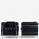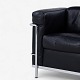 LC 2 - Lænestol i originalt sort læder med stel i stål. Stemplet fra producent.