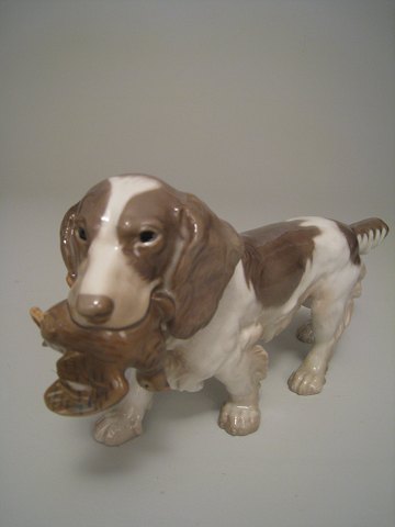 Bing & Grøndahl, 2061 Spaniel med agerhøne i mund, l-25 h-14,5, Lauritz Jensen Emne nummer: 10031k
