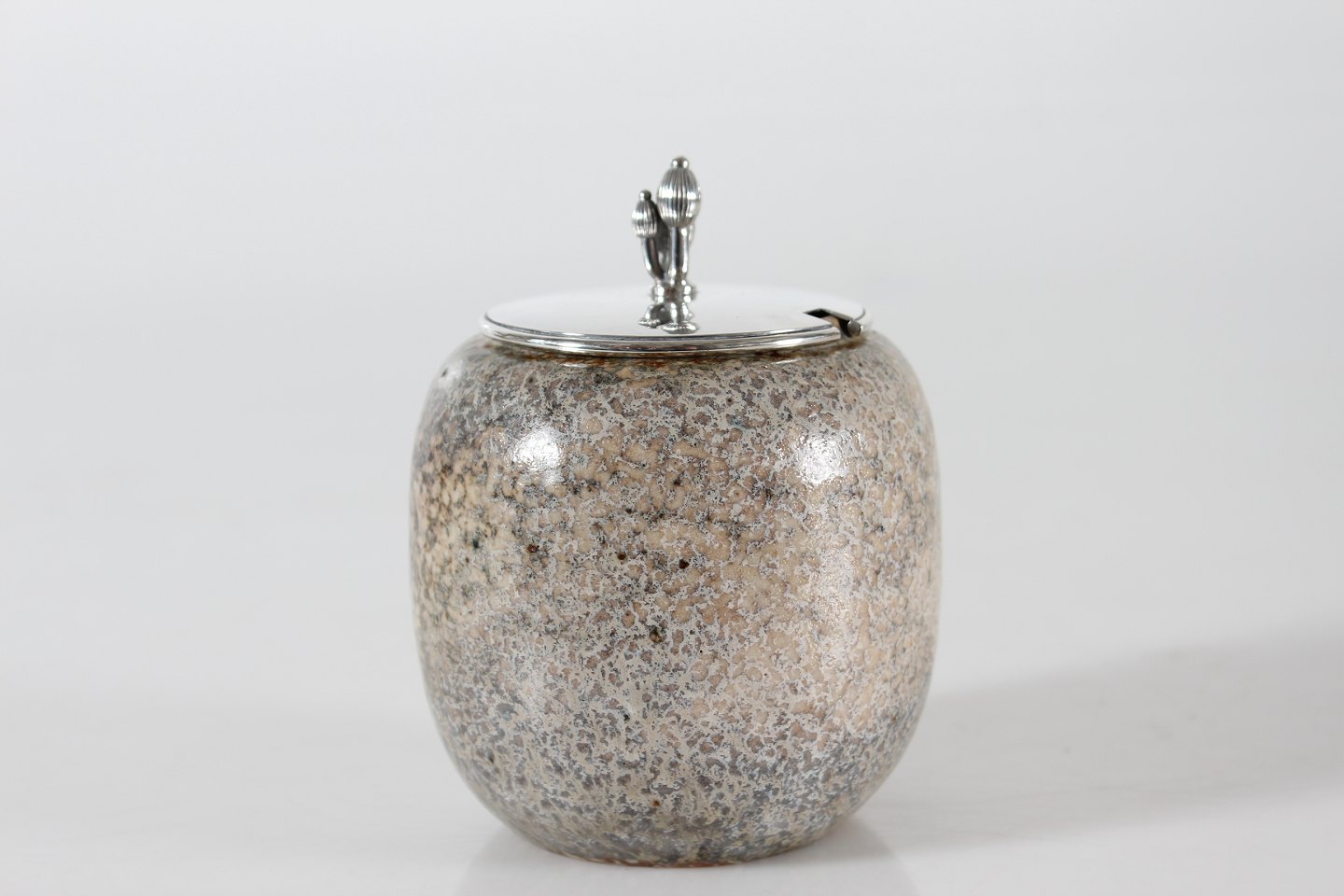 Stoneware jar with lid of sterling