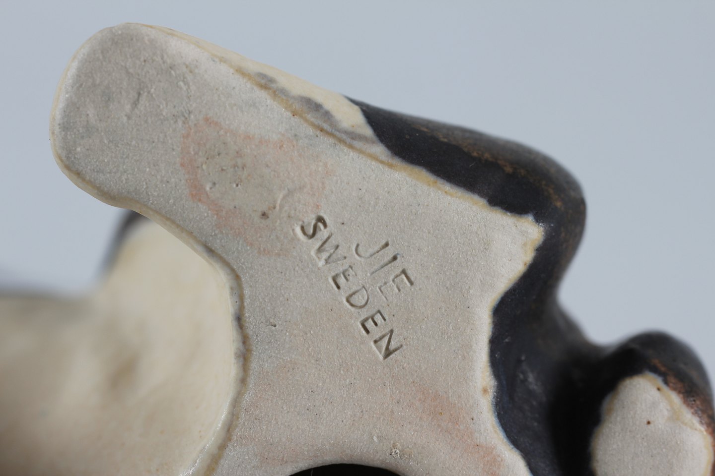 JIE Keramik - Sverige Boston terrier Keramisk figur dekoreret med hvid og mørk glasur Højde 15 cm Længde 12 cm Fin fejlfri stand uden skår eller rep.