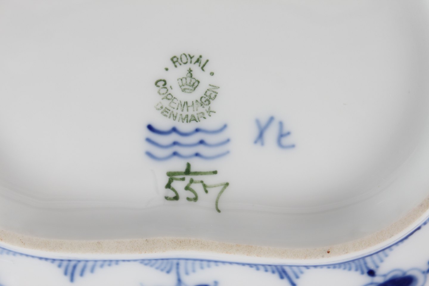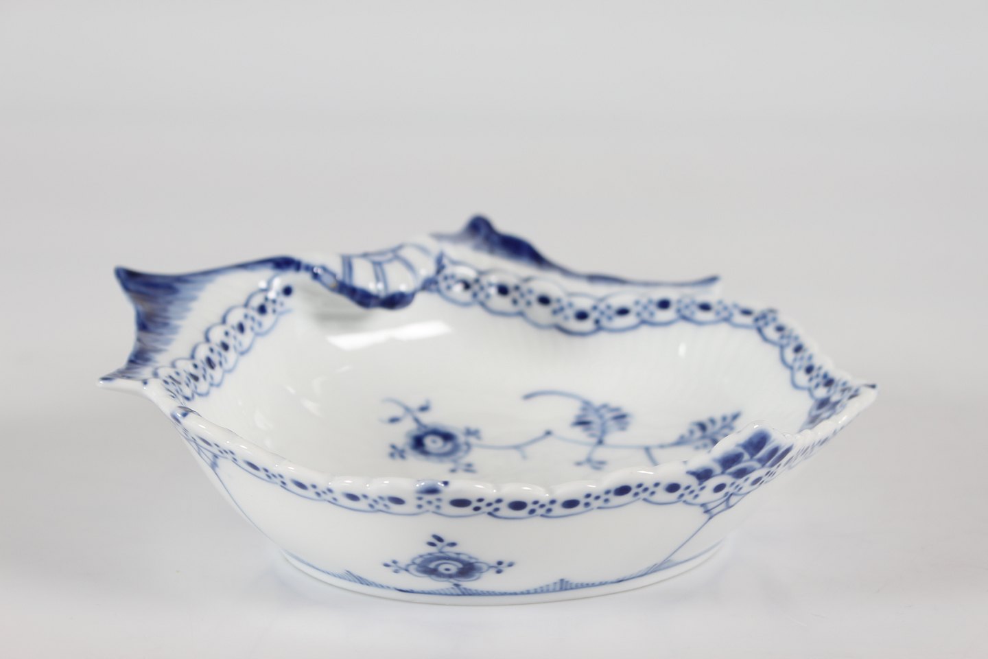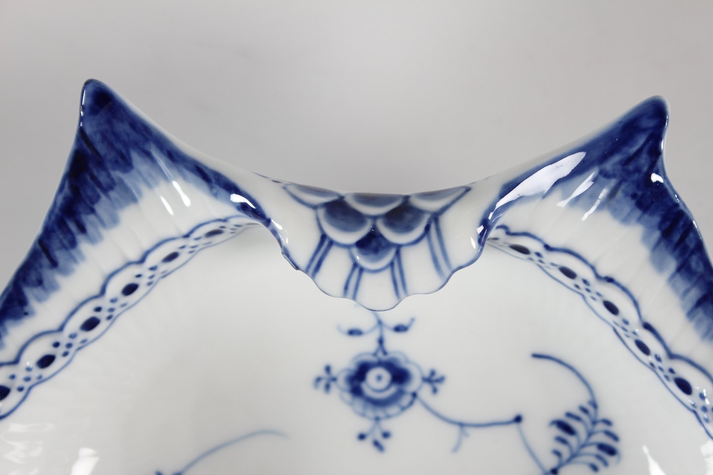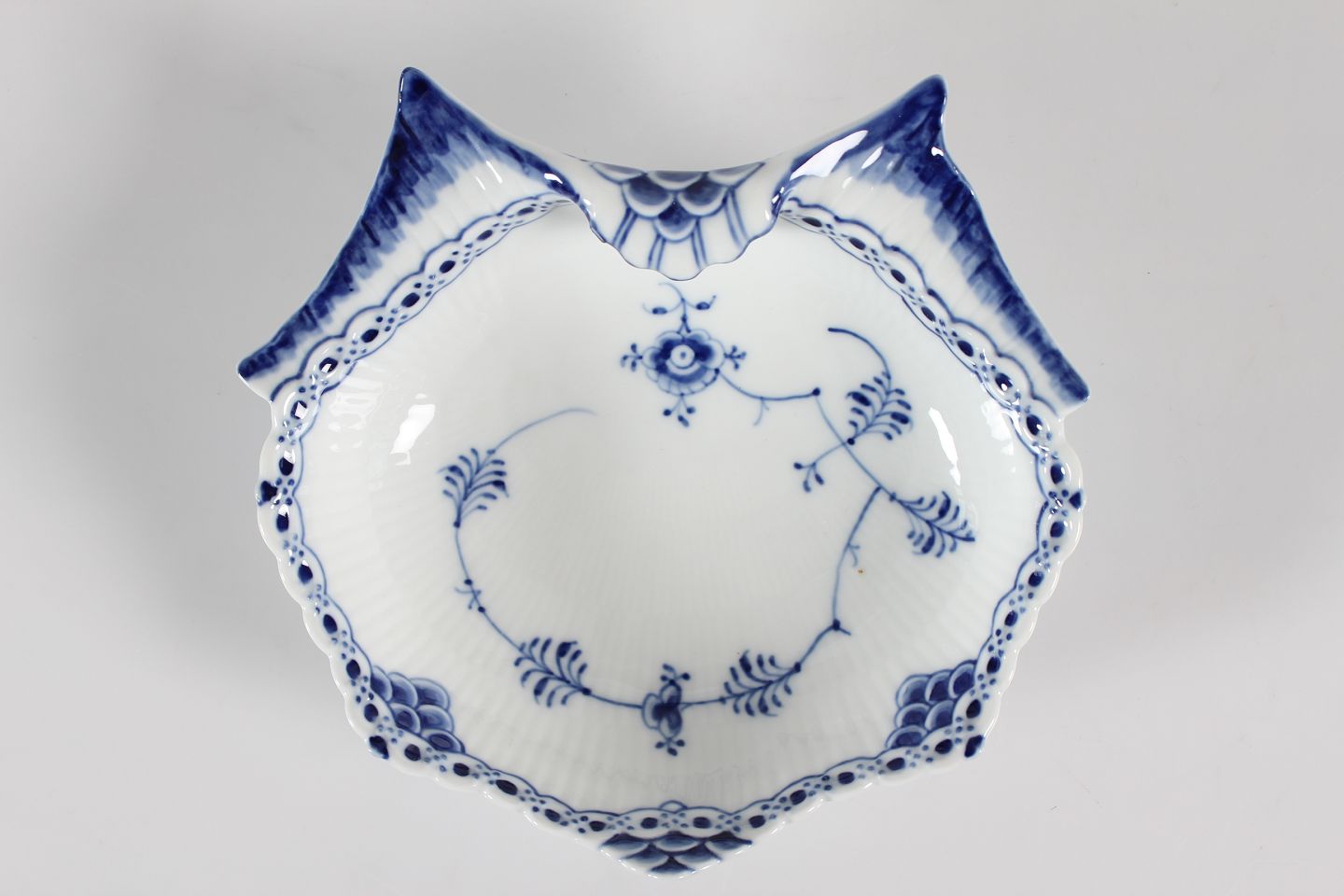 Royal Copenhagen Blue Fluted Half Lace Mussel shaped serving platter no. 1/557 With stamp from 1941 Length 19 cm Width 18.5 cm 1. quality - no chips or repair - see image of a tiny missing glaze on the top edge