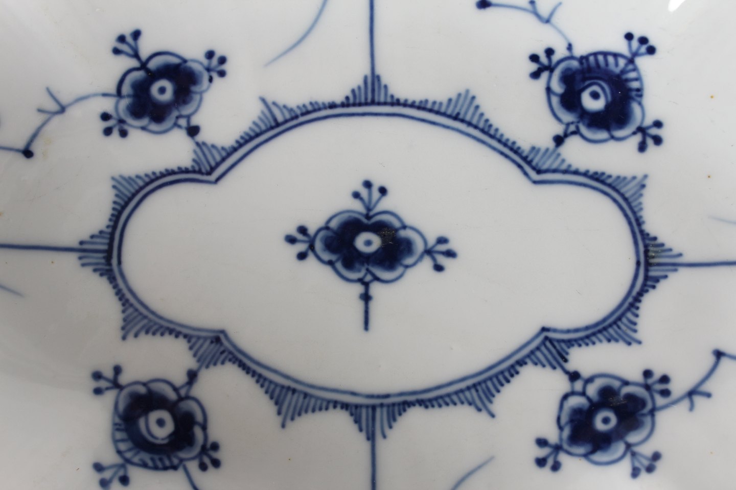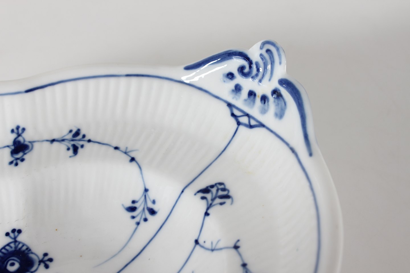 Royal Copenhagen Musselmalet Riflet Sjældent serveringsfad model nr. 1/3 Med stempel fra perioden 1894-1922 Længde 31 cm Bredde 22,5 cm Fin fejlfri 1. sortering med lidt uregelmæssig glasur