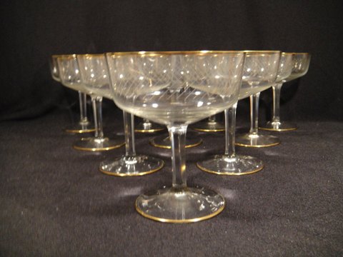 Champange skål på høj fod´med 6 kantet sleben stilk.. Højde 11 cm. Kummens diameter: 9,5 cm.