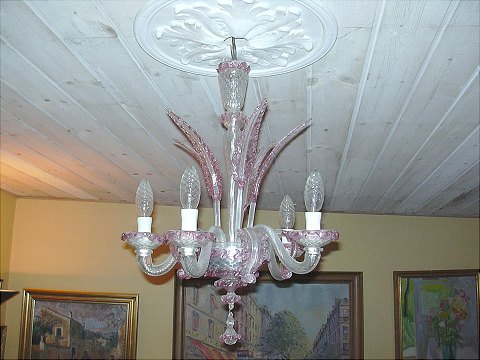 Flot Italiensk Veneziansk lysekrone af glas , 1900-tallets slutning Fem svungne lysarme. Mål H. 55 cm. Ø ca.40 cm.
