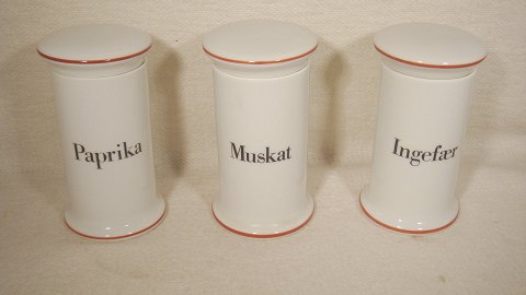 Apoteker/krydderi krukker, fra Bing & Grøndahl.