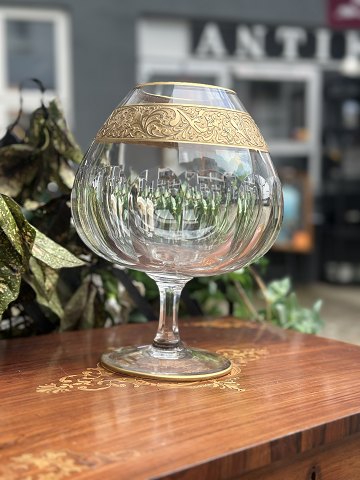 Moser glas pokal krystal , meget høj kvalitet fra midten af 1900 tallet , bredt bånd af forgyldt 24k guldemalje med indgraverede blomster i klassisk barok