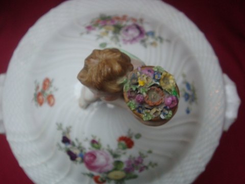 Saksisk Blomst Terrin med puti på låg Royal Copenhagen KGL 1800 tallet
