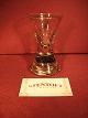 Klukflaske i klart glas med krone prop og guldkant fra Holmegaard.