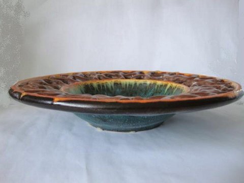 Stort Michael Andersen fad, diameter 35,5 cm, højde 7 cm. grøn skål med dyremotiver rundt om. SOLGT