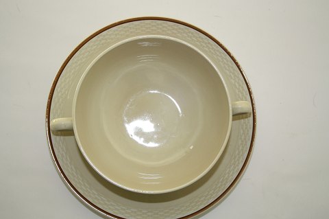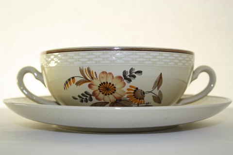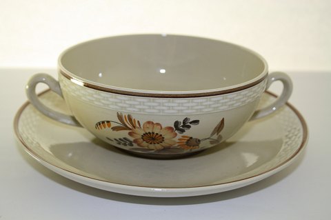 Knud, Aluminia fajance. Design Niels Thorsson. Håndmalet. Produceret i perioden 1934-1963. Boullionkop med underkop. Diameter 13 cm, kop minus ører. Dek.nr. 262/1633. Underkop diameter 18 cm.