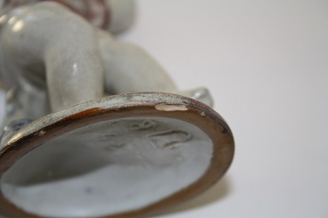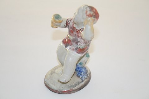 Michael Andersen keramik, Bornholm. Flerfarvet glasur. Del af serie. Efterår, pige med krus. Højde 11 cm. Der er et lille afslag i bunden.