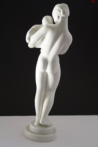 Bing & Grøndahl. Figur i blanc de chine, hvidt porcelæn med blank glasur. Mor og barn formgivet af Kai Nielsen. Gammel udgave med mærke 111 i bunden. 2. sortering med fejl på albuer og på sokkel.