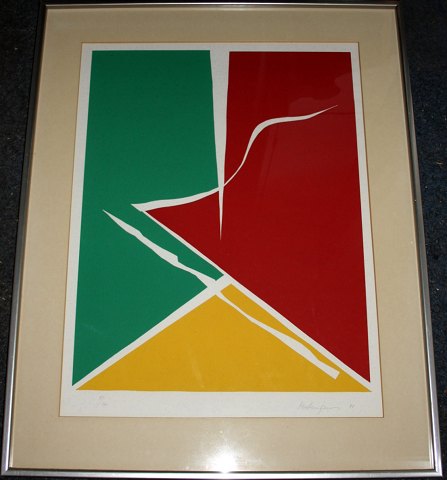Richard Mortensen, serigrafi i pas partout i metalskifteramme. Nr. 8 ud af 100. Signeret Mortensen 81. Rammen måler 72 x 90 cm. Pris: SOLGT