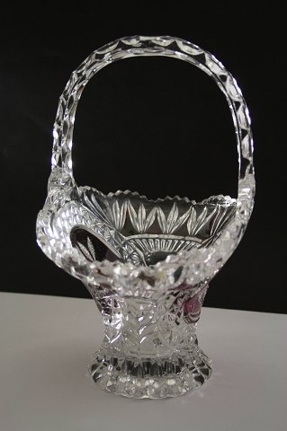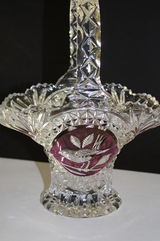 Bøhmisk krystalkurv med hank. Motiv 2 fugle. højde 27 cm.