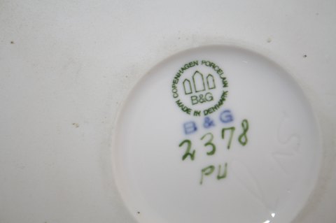 Bing & Grøndahl Tommelise på fad formet som åkandeblad. dekorationsnr. 2378. Mål: 18x18x9 cm. Formgivet og designet af Ebbe Sadolin og Svend Jespersen. I produktion indtil 1972. Solgt