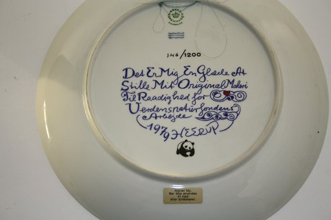 Heerup platte motiv elefant med unge. Dek.nr. 146/1200 Verdensnaturfonden 1979. Diameter 24,5 cm. solgt