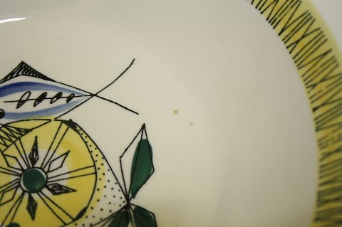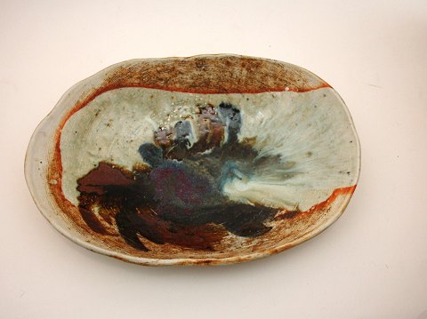 Flamingo ildfastserie fra Stavangerflint i Norge. Skål med ører. Nr.2011/2. Højde 5 cm. Omkreds med ører 24 cm.