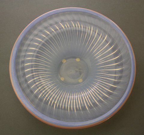 Aluminia, Lone hvid fajance med blå stribe, designet af Nils Thorsson, produceret i perioden 1940-1966.