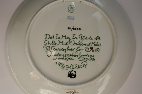 Royal Copenhagen, Henry Heerup. Dek.nr. 651/1000. Verdensnaturfonden 1978. Motiv Ørn, næsehorn, isbjørn med unge og sæl. Diameter 25 cm. Pris: SOLGT