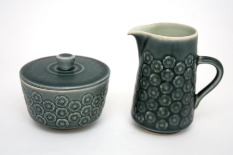 Holmegaard, Atlantis serien designet af Michael Bang i 1980. Farveklatter og tråde i blåt glas på opal hvidt og klart glas. Blæst i tre lag glas. Vase højde 22 cm. Diameter 21 cm. Pris: SOLGT