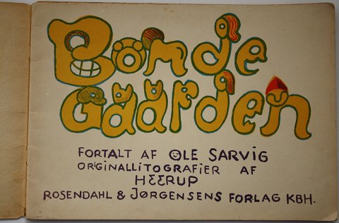 Bondegaarden fortalt af Ole Sarvig med originallitografier af Henry Heerup. Rosendahl & Jørgensens Forlag, uden år. (20 sider) Illustreret i farver. Hæftet. Tværformat længde 32,5 x 23 cm. Lidt brugsslid for- og bagside samt en løs side, men ellers i pæn stand.SOLGT