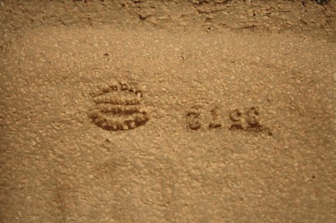 Søholm, Bornholm, relief med engel i brun/blå glasur på rødglaseret baggrund. Dek.nr. 3572. 15,5 x 15,5 cm. Pris: 250 kr.