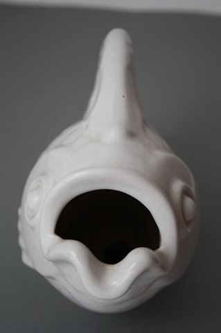 Michael Andersen, Bornholm hvidglaseret fisk. Højde 14 cm. Længde 19 cm. Pris: SOLGT