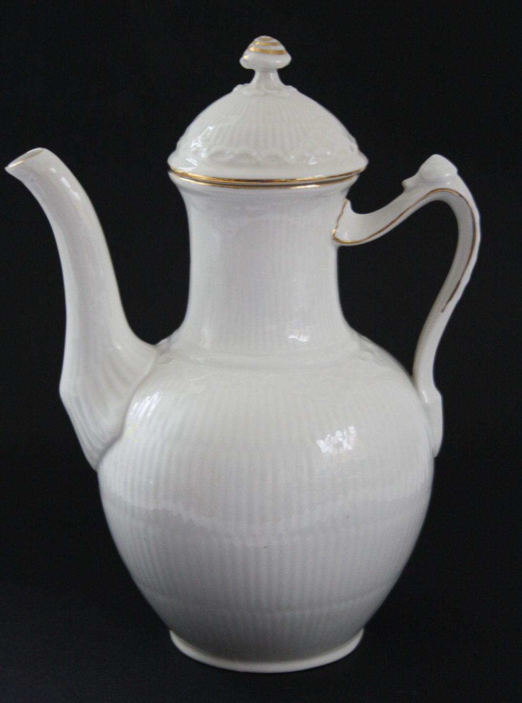 Royal Copenhagen, Tradition riflet med guldkant. Kaffekande. Dek.nr. 1275/519. I sortering. Højde 24,5 cm. SOLGT