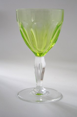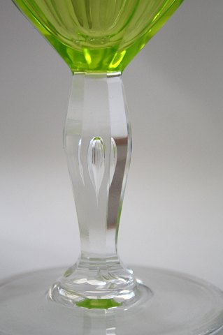 Holmegaard glasværk, Paul hvidvin neongrøn kumme og sleben stilk med luftboble som dråbe. Bemærk dråbe og stilk er lidt anderledes, end Paul normalt er. Højde 12,5 cm. Pris:
