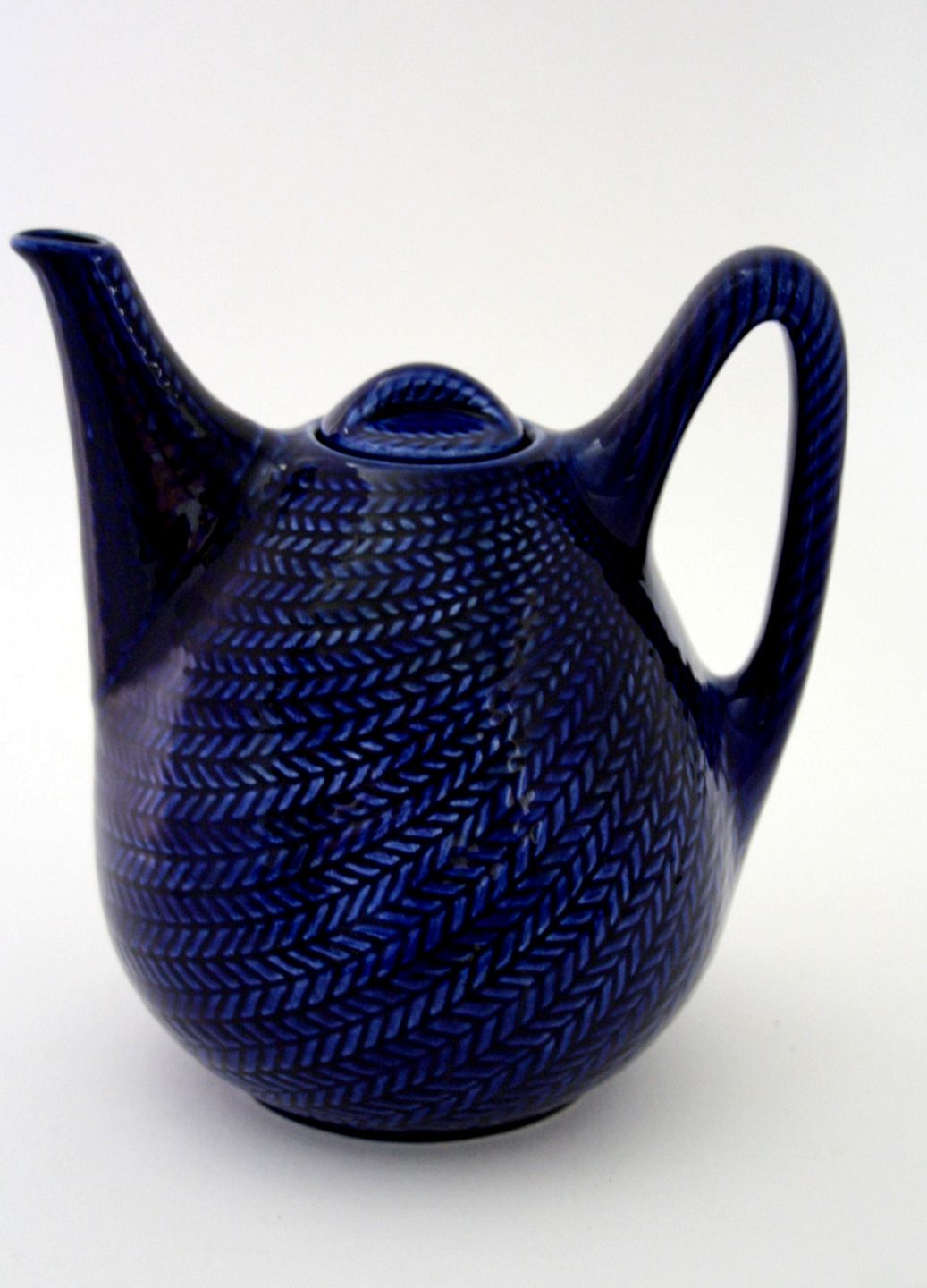 Rørstrand, Blå Eld designet af Hertha Bengtson i 1950. Tekande. Flot stand. Højde 18,5 cm. Pris: 1400 kr.