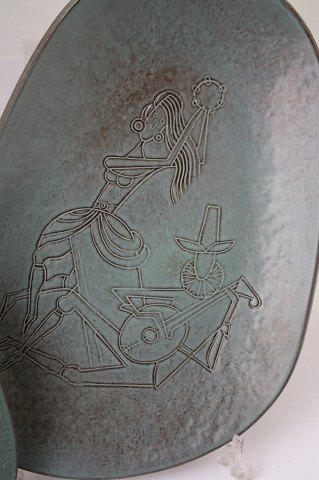 Stort vægrelief, ekstra foto. Længde 43,5 cm. Bredde 30 cm. Glasur afskallet på kanten på toppen af relieffet. Pris: SOLGT
