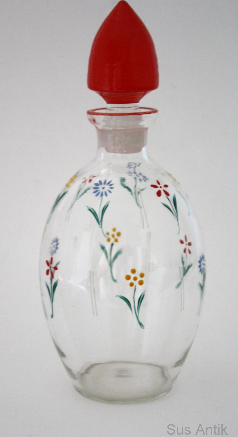 Lille blomster bemalet karaffel antagelig svensk. Højde 15 cm. Pris: SOLGT