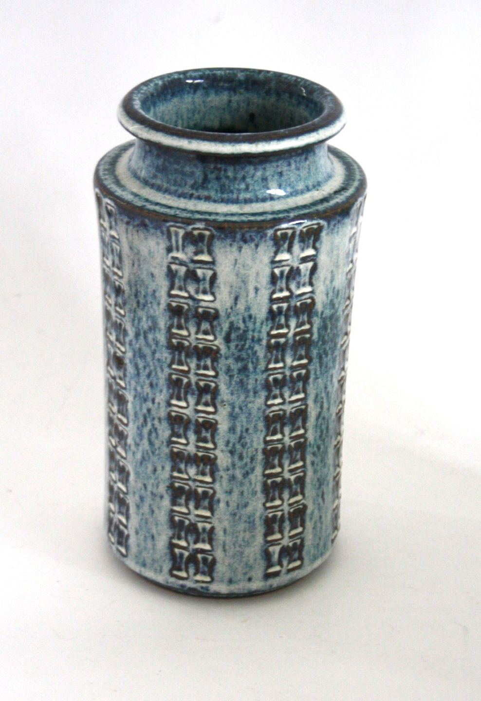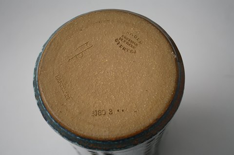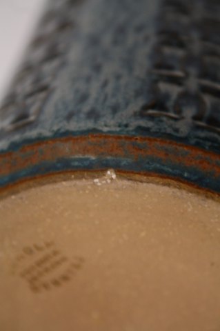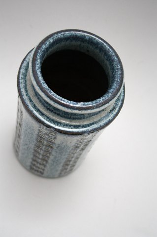 Søholm, Blåglaseret stentøjsvase. Højde 24 cm. Diameter bund 12cm. Bemærk lille ubetydeligt afslag i bund, se ekstra foto. Pris: SOLGT