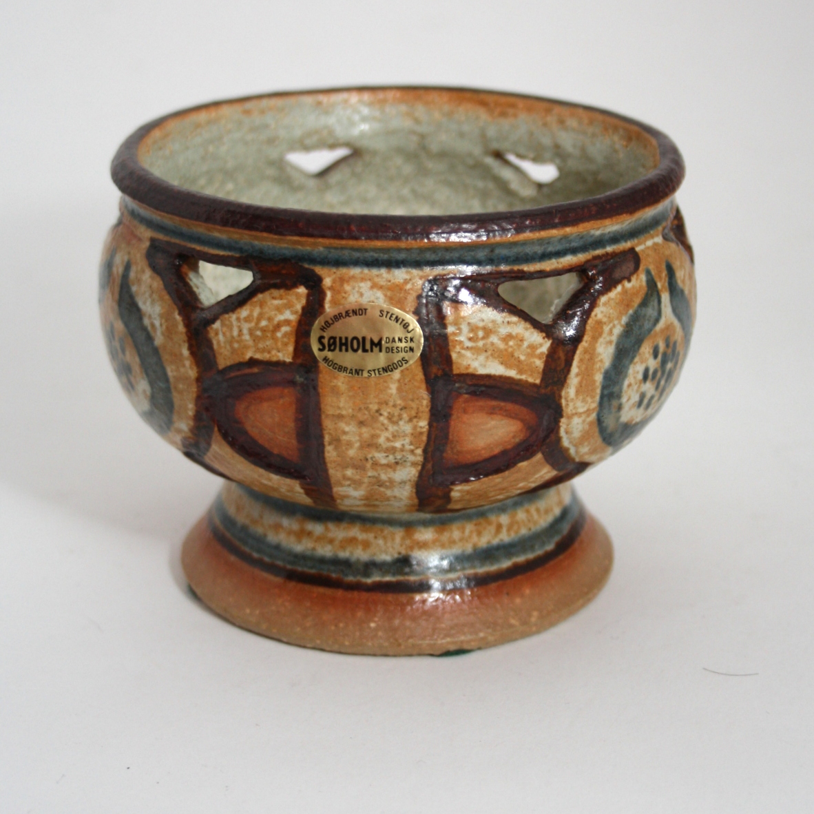 Søholm, Lysestage/skål i stentøj med flot flerfarvet glasur. Højde 9 cm. Diameter 11 cm. Pris: SOLGT