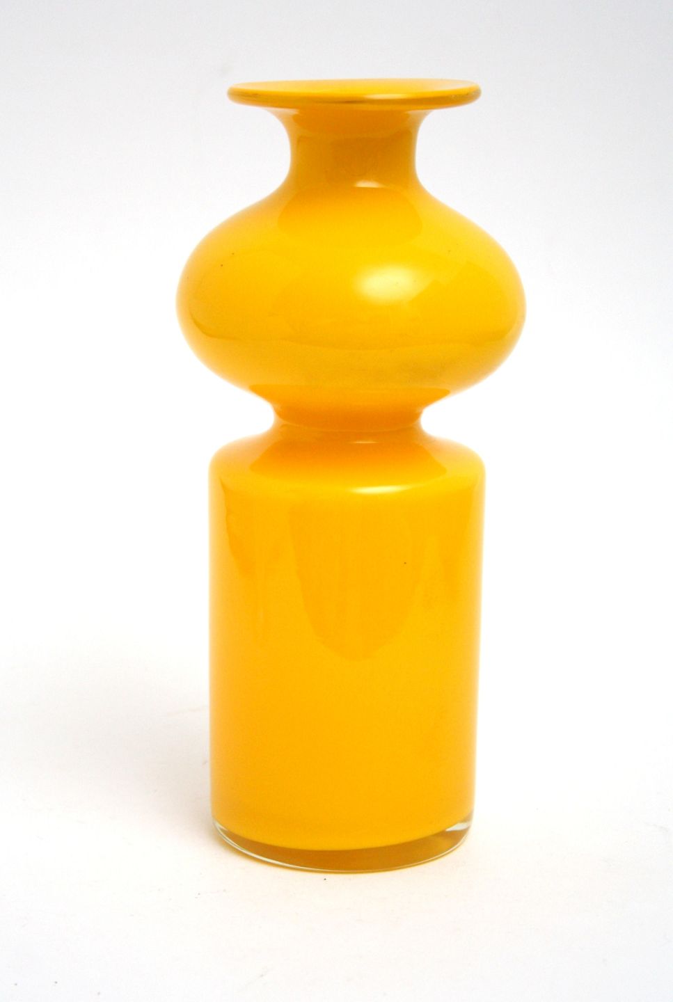 Gul Carnaby vase, højde 23 cm. designer Per Lütken, Kastrup-Holmegaard Glasværker 1968, Pris: SOLGT
