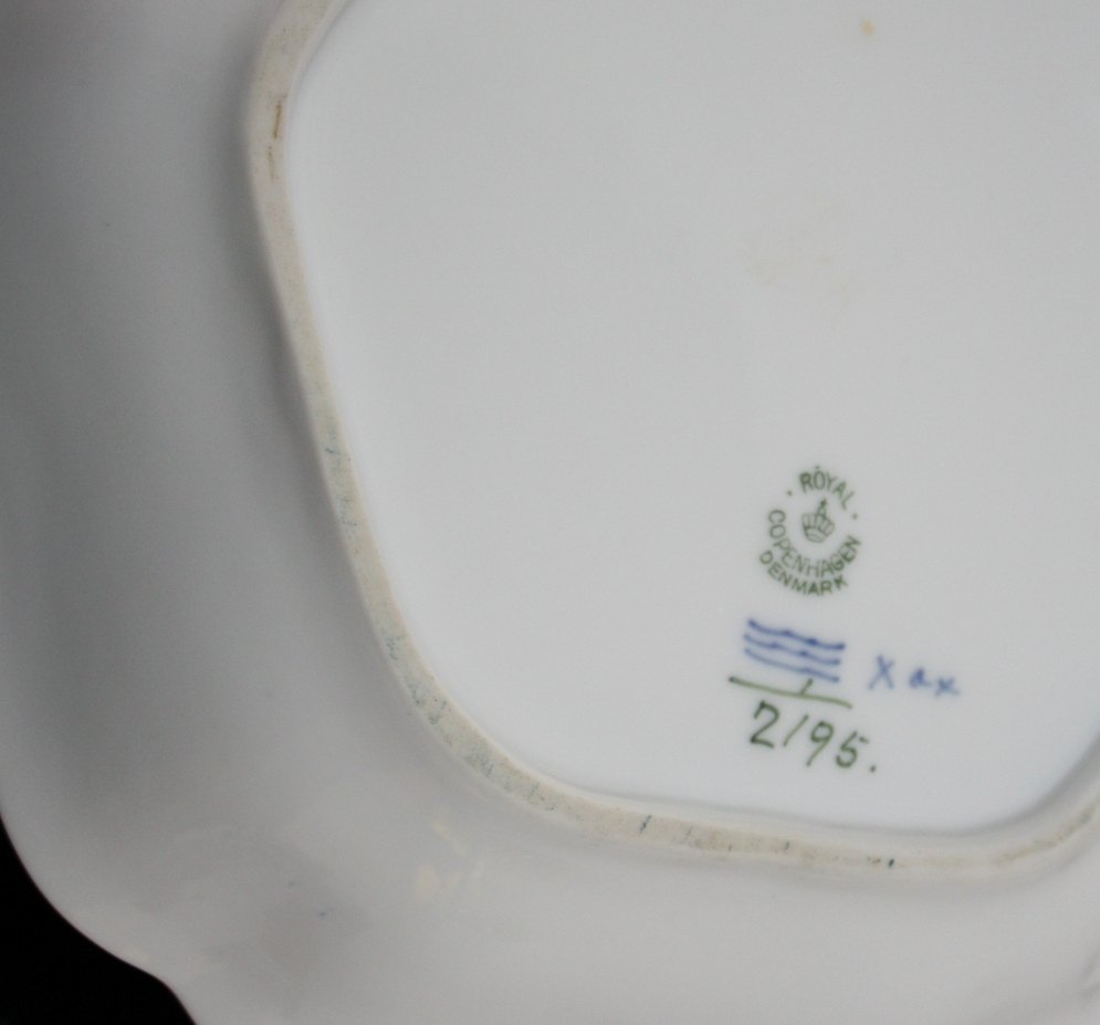 Sekskantet fad/skål, Musselmalet riflet, Royal Copenhagen