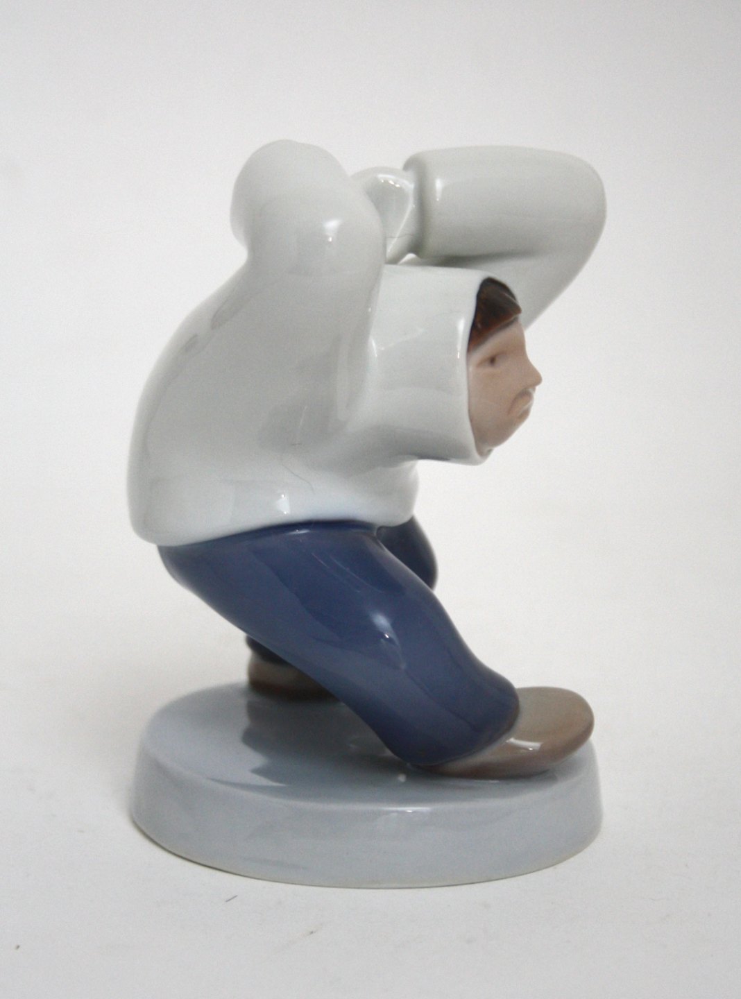 Bing & Grøndahl, Vred Grønlænder designet af Karl Kristoffersen. Karl Kristoffersen er en del af den skulpturelt dygtige familie Kristoffersen fra Godthåb. Højde 10,5 cm. Pris: SOLGT