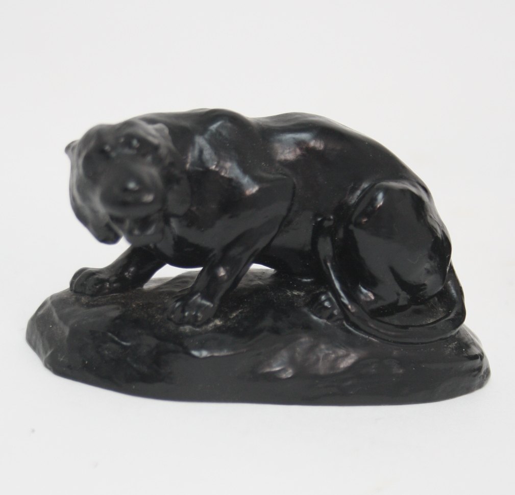 Tv. Ipsens Enke, Rovkattedyr. Dek.nr. 76. Højde 4 cm. Længde 8,5 cm. Pris: solgt.