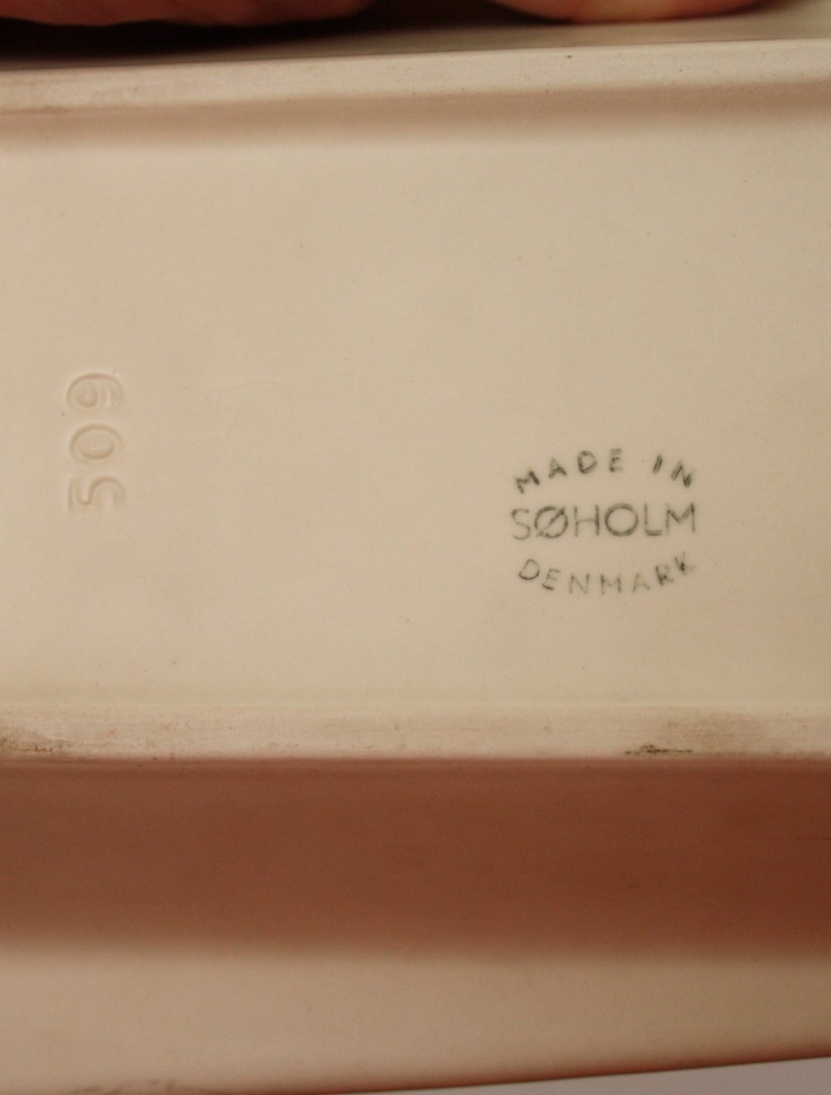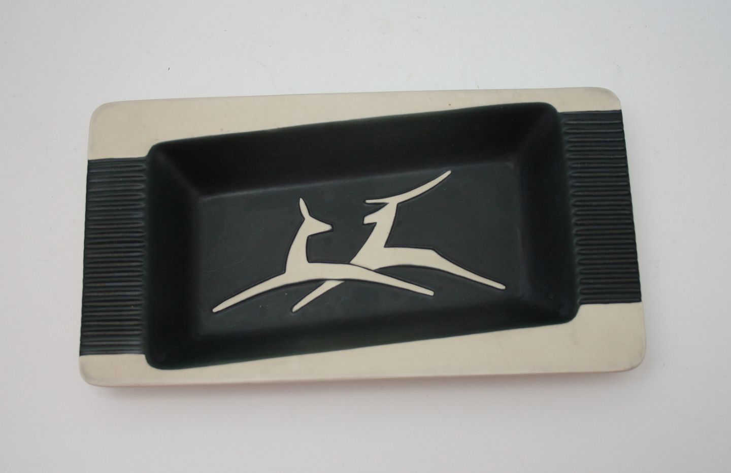 Søholm, aflangt fad med 2 hjorte. Designet af Holm-Sørensen i 1958-59. Formnr. 509. Længde 25 cm. Bredde 13,5 cm. Flot stand. Pris: SOLGT