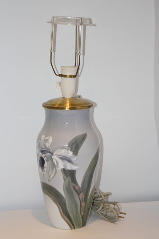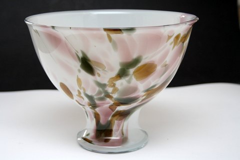 Karaffel med hvid emaljebemalet vinranke. Sorte pletter i bemalingen. Knækket i bund. Højde 23,5 cm. Pris: SOLGT