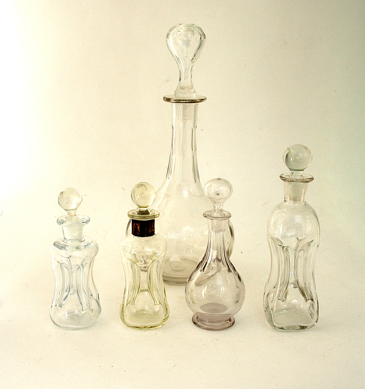 Kuvert klukflasker og karaffel med oliveslibning, Holmegaard