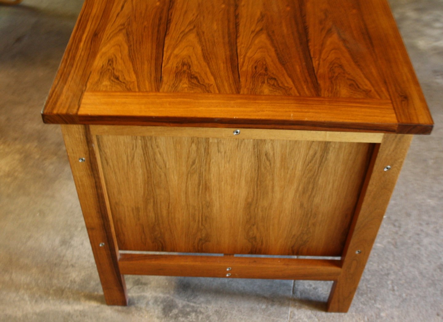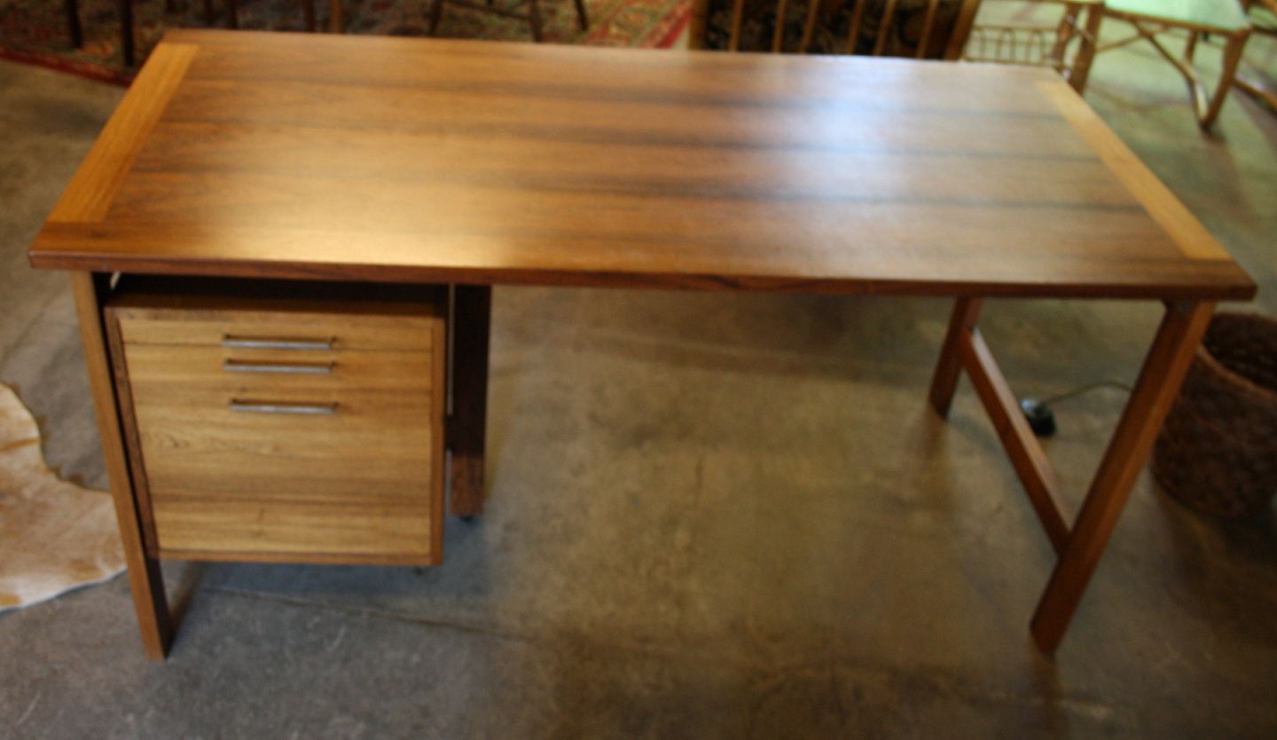 Poul Cadovius, palisander skrivebord i flot stand. 3 skuffer, den nederste er til arkivmapper. Certifikat medfølger. Højde 70,5 cm. Bredde 72 cm. Længde 155 cm. Pris: SOLGT