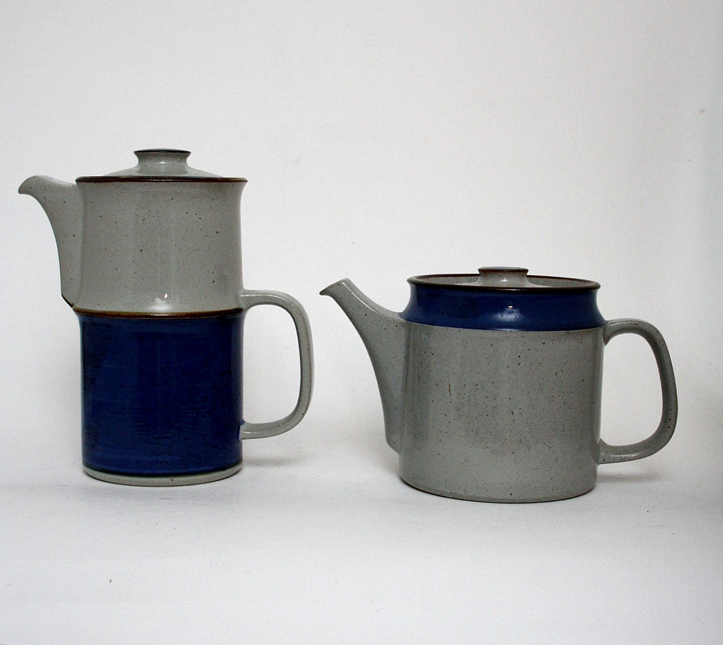 Knabstrup, Christine stentøjsstel grå glasur med blå kant. Designet af den tyske kunstner Christine Konschak, som var tilknyttet Knabstrup i perioden 1967-1970.